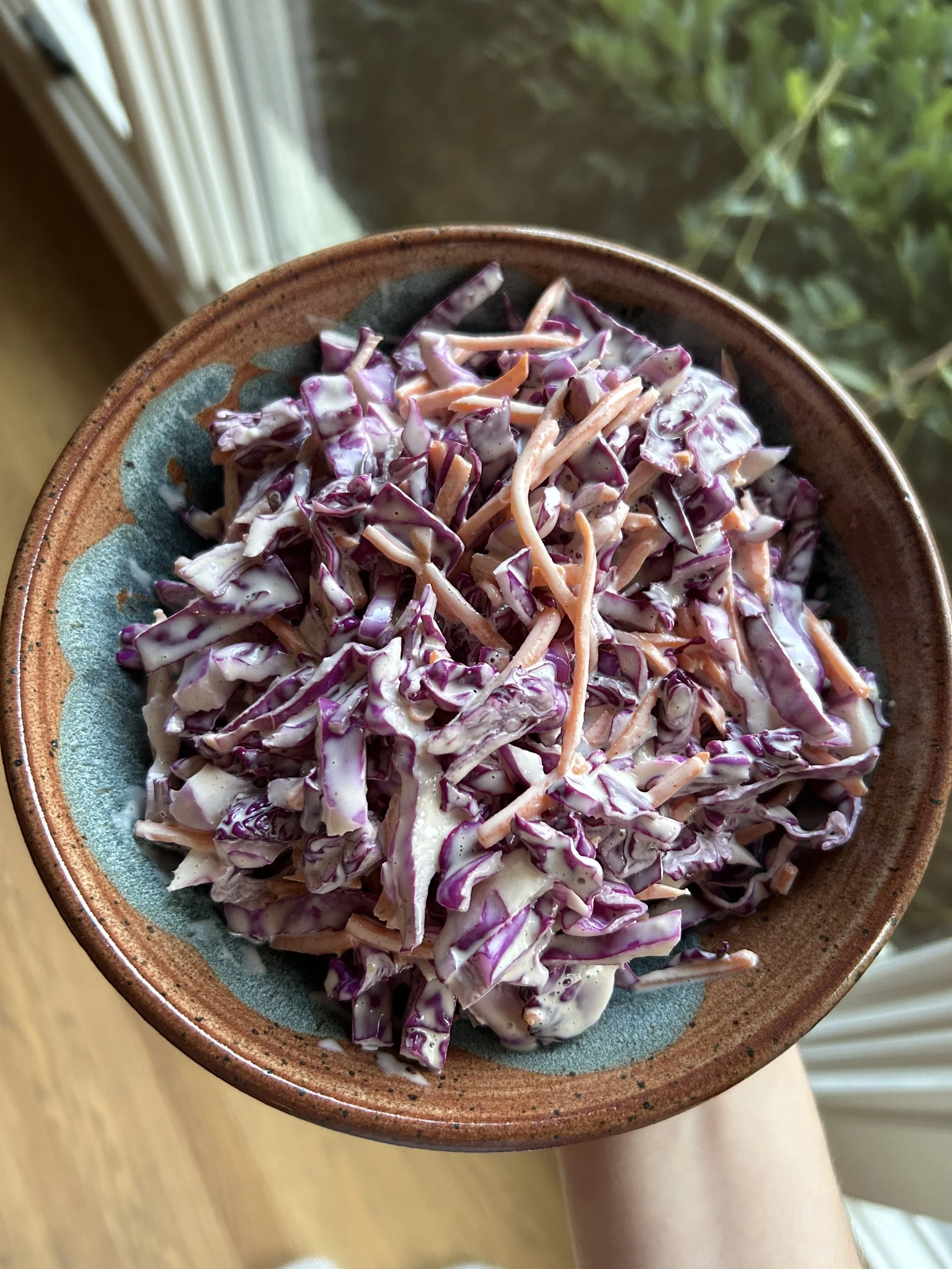 This is a classic southern coleslaw recipe that is bright, creamy, and is a wonderful component to almost any dish.