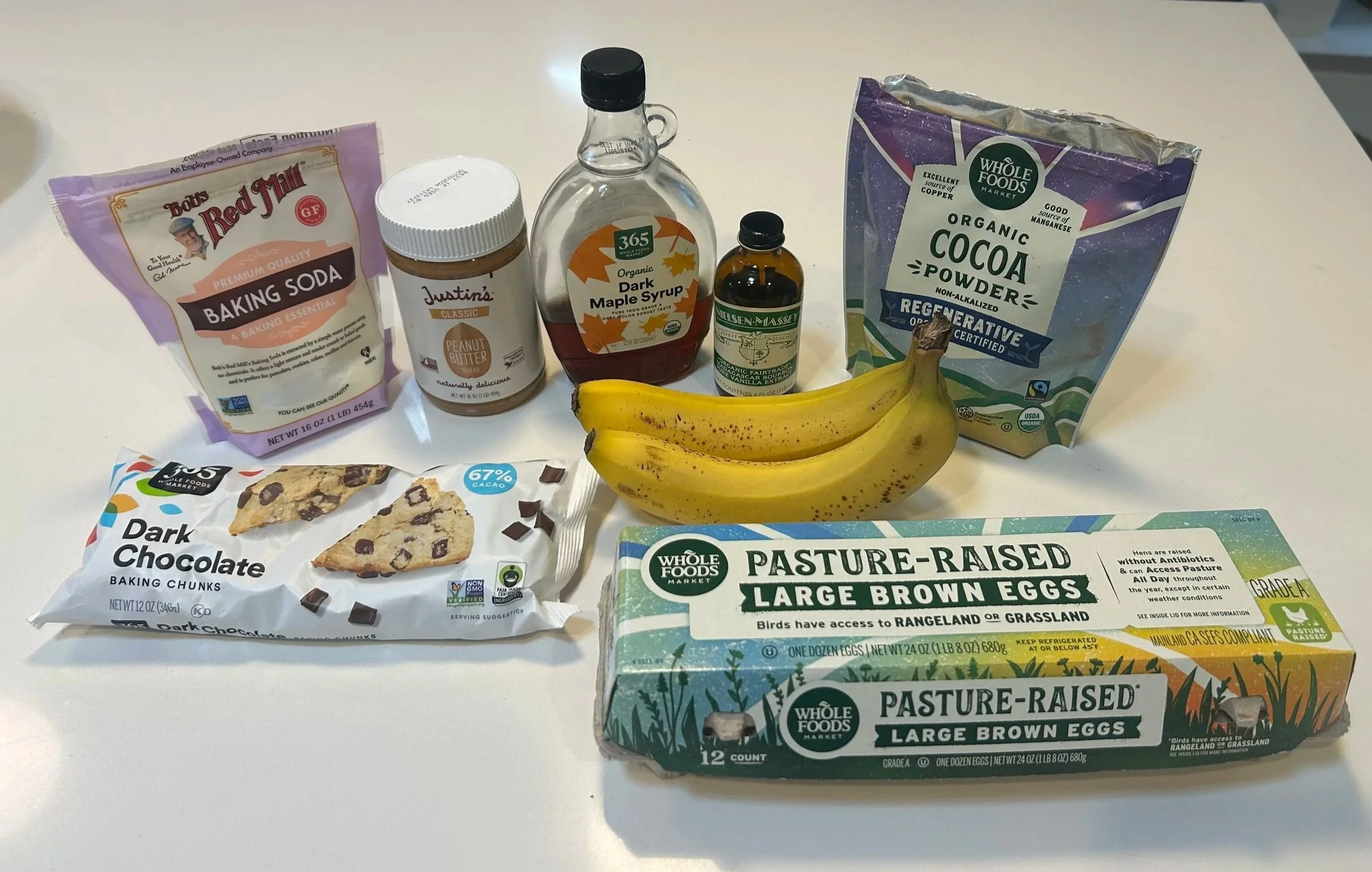 - Add the egg, baking soda, maple syrup, peanut butter, and cocoa powder to the banana. Mix well until you have a thick, cohesive batter.